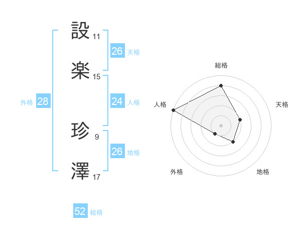 設楽 珍澤さんを姓名の画数から五運を鑑定