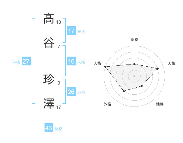 髙谷 珍澤さんを姓名の画数から五運を鑑定