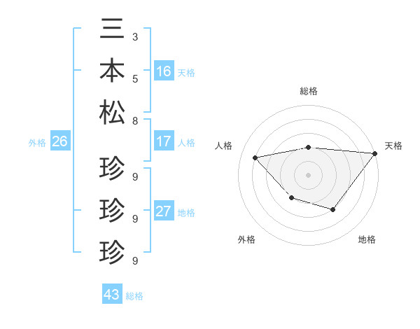 三本松 珍珍珍さんを姓名の画数から五運を鑑定
