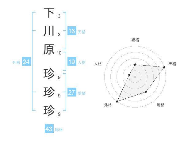 下川原 珍珍珍さんを姓名の画数から五運を鑑定