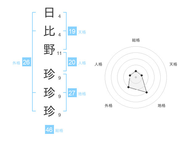 日比野 珍珍珍さんを姓名の画数から五運を鑑定