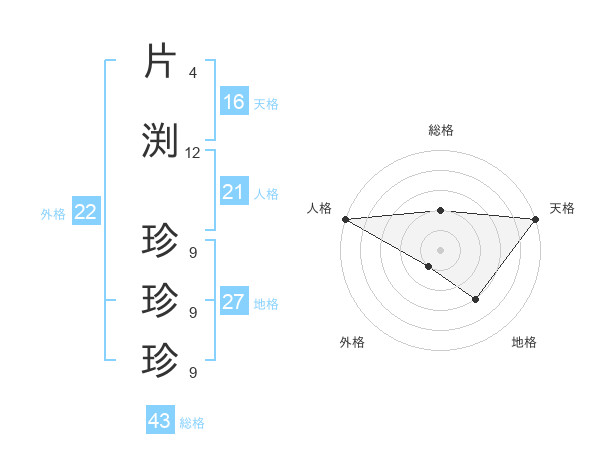 片渕 珍珍珍さんの総格は43画の2点!