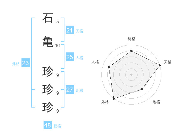 石亀 珍珍珍さんを姓名の画数から五運を鑑定