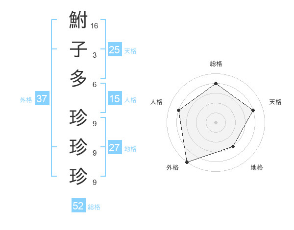 鮒子多 珍珍珍さんの外格は37画の5点!