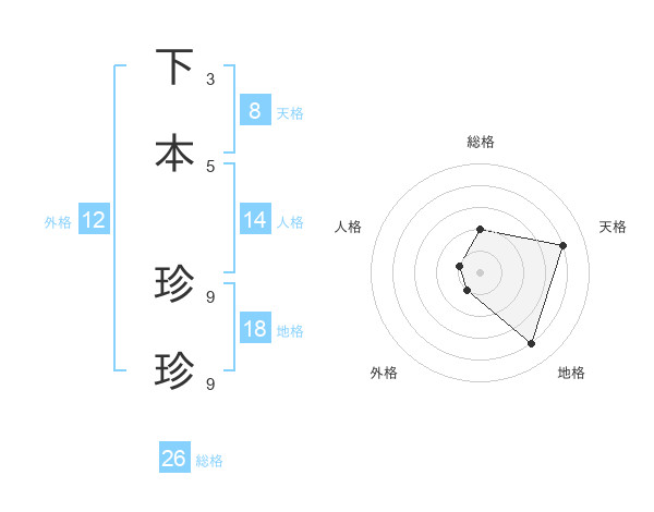 下本 珍珍さんを姓名の画数から五運を鑑定