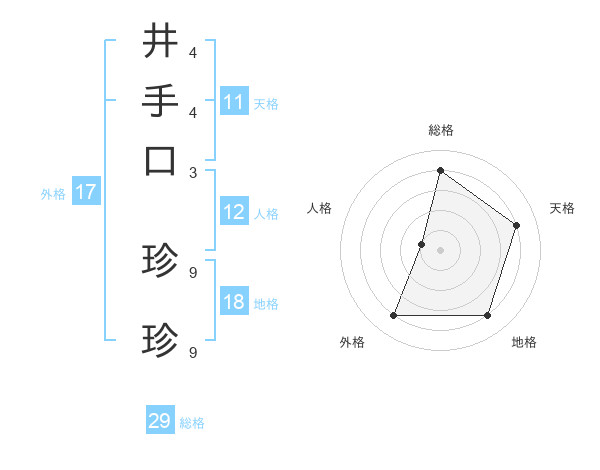 井手口 珍珍さんを姓名の画数から五運を鑑定