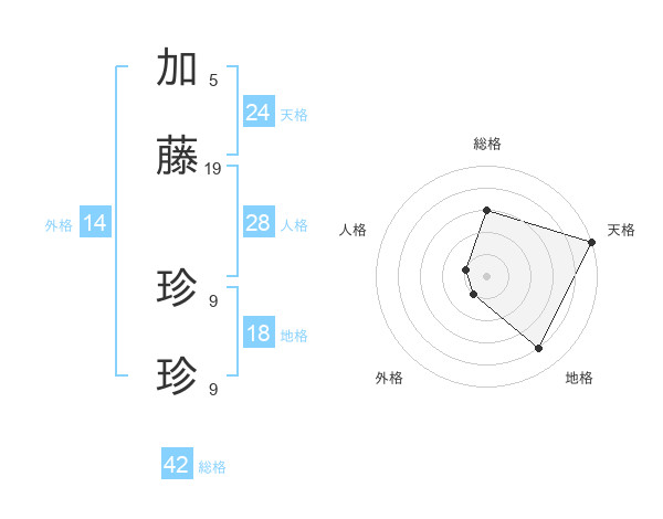 加藤 珍珍さんの天格は24画の5点!