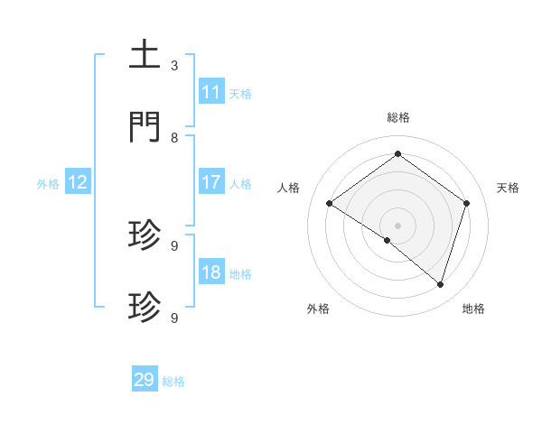 土門 珍珍さんを姓名の画数から五運を鑑定
