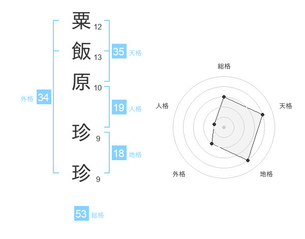 粟飯原 珍珍さんの総格は53画の3点!