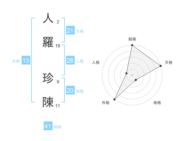 人羅 珍陳さんの総格は41画の5点!