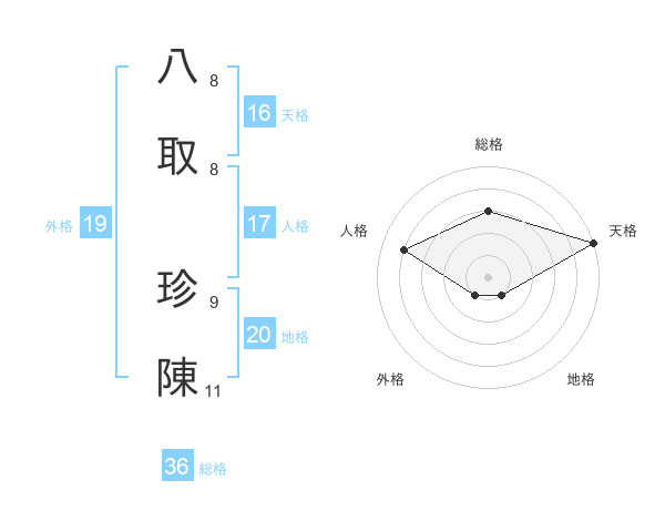 八取 珍陳さんの天格は16画の5点!