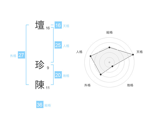 壇 珍陳さんを姓名の画数から五運を鑑定