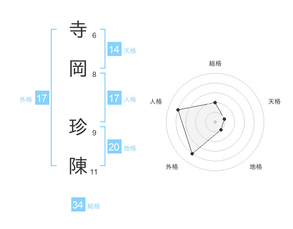 寺岡 珍陳さんの総格は34画の2点!