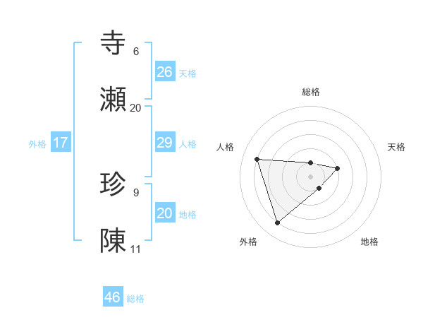 寺瀬 珍陳さんを姓名の画数から五運を鑑定