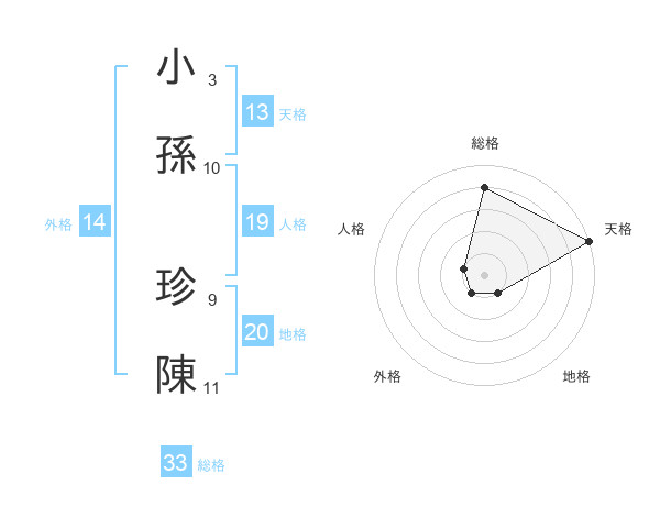小孫 珍陳さんの天格は13画の5点!