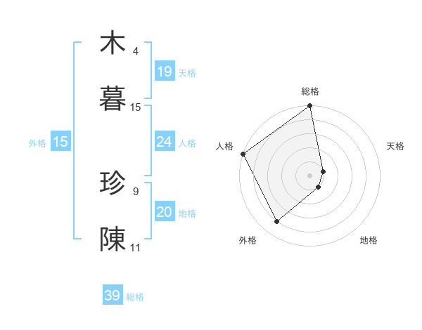木暮 珍陳さんを姓名の画数から五運を鑑定