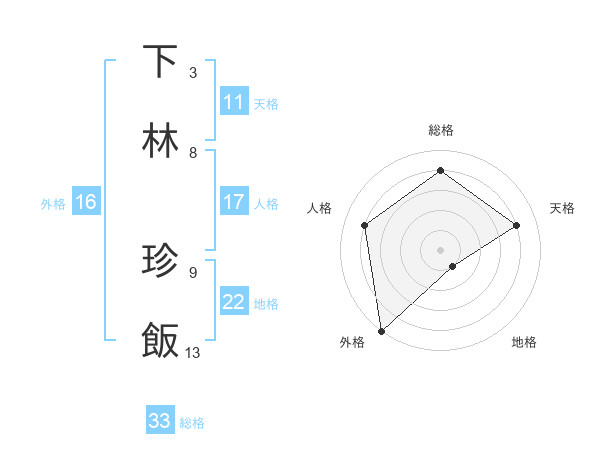 下林 珍飯さんを姓名の画数から五運を鑑定