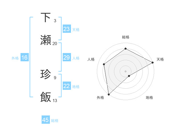 下瀬 珍飯さんの総格は45画の4点!