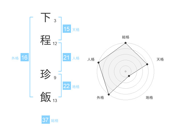 下程 珍飯さんの総格は37画の5点!