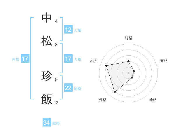 中松 珍飯さんの天格は12画の1点!