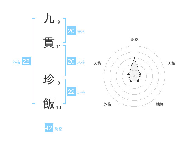 九貫 珍飯さんを姓名の画数から五運を鑑定