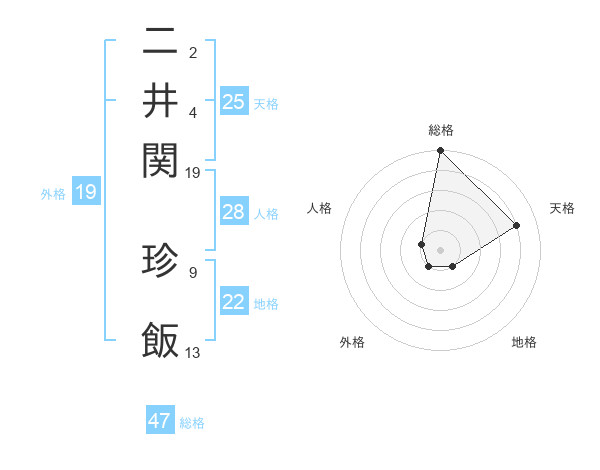 二井関 珍飯さんを姓名の画数から五運を鑑定