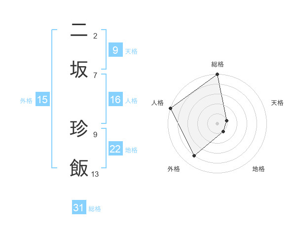 二坂 珍飯さんを姓名の画数から五運を鑑定