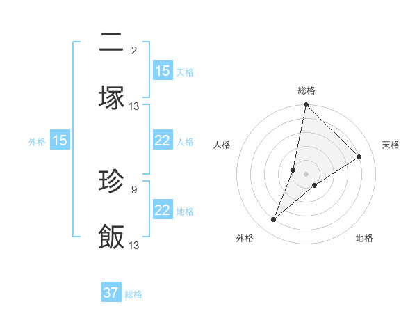 二塚 珍飯さんの総格は37画の5点!