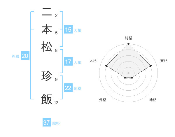 二本松 珍飯さんを姓名の画数から五運を鑑定