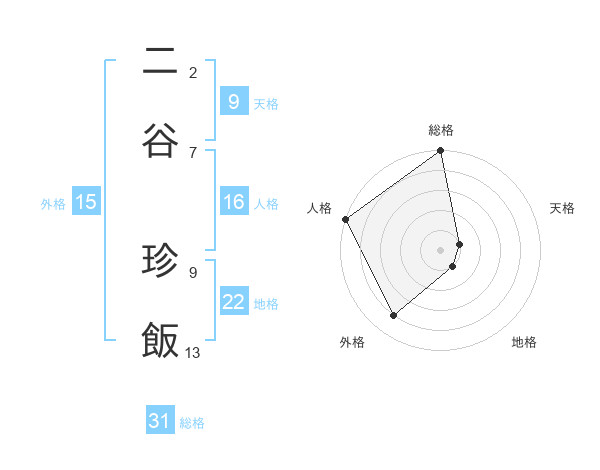 二谷 珍飯さんの総格は31画の5点!