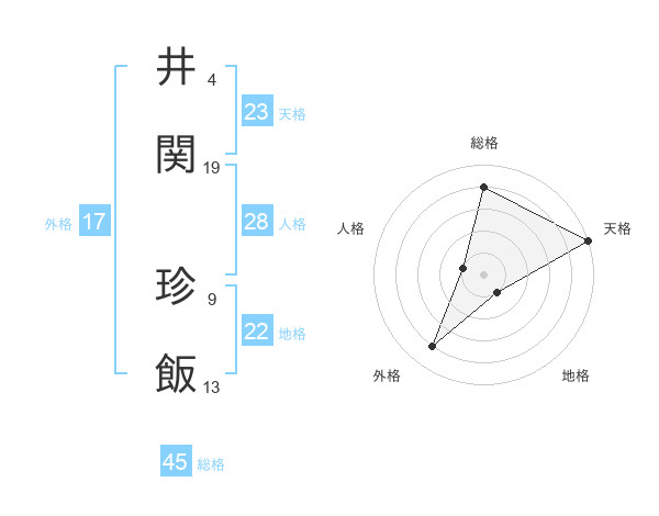 井関 珍飯さんを姓名の画数から五運を鑑定