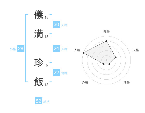 儀満 珍飯さんの総格は52画の4点!