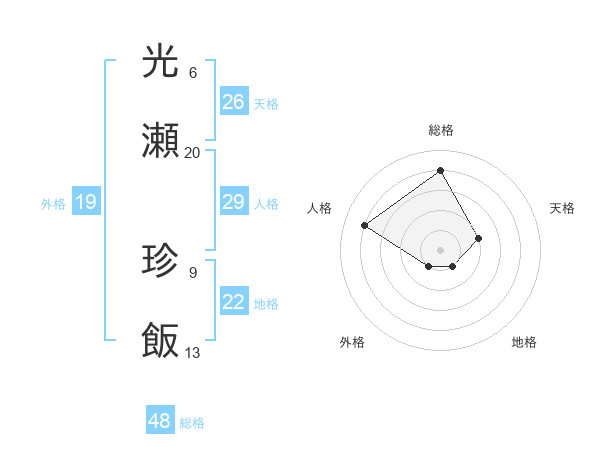 光瀬 珍飯さんの総格は48画の4点!