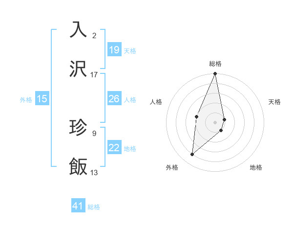 入沢 珍飯さんの総格は41画の5点!