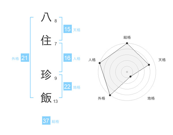 八住 珍飯さんを姓名の画数から五運を鑑定