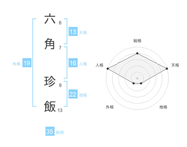 六角 珍飯さんの総格は35画の4点!