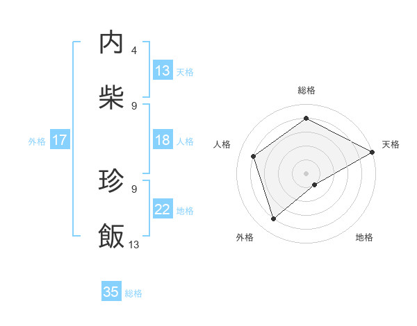 内柴 珍飯さんの総格は35画の4点!