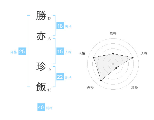 勝亦 珍飯さんの総格は40画の2点!