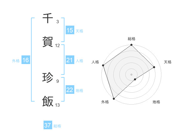 千賀 珍飯さんを姓名の画数から五運を鑑定