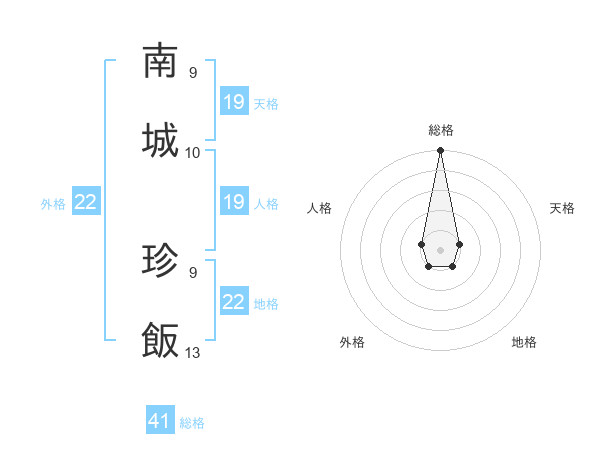 南城 珍飯さんの総格は41画の5点!