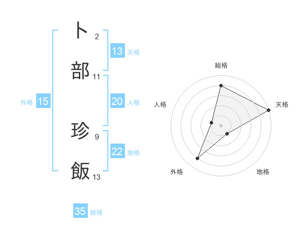 卜部 珍飯さんを姓名の画数から五運を鑑定