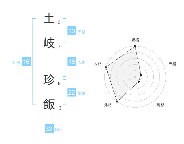 土岐 珍飯さんを姓名の画数から五運を鑑定