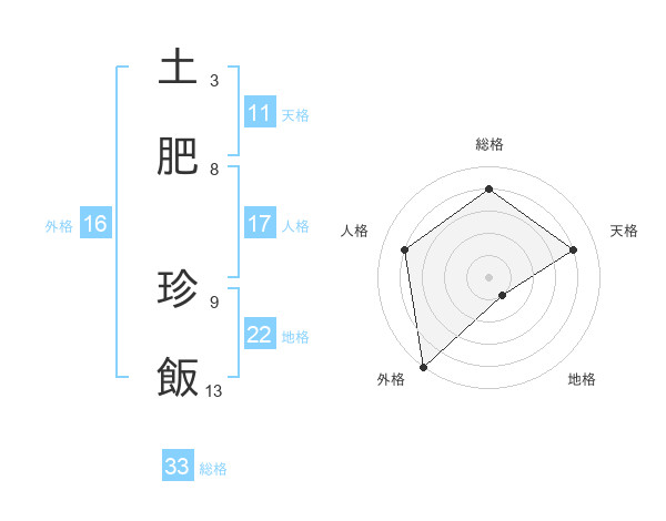 土肥 珍飯さんの総格は33画の4点!