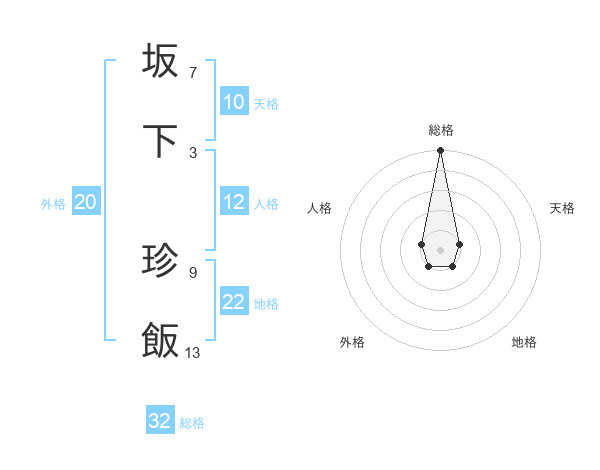 坂下 珍飯さんの総格は32画の5点!