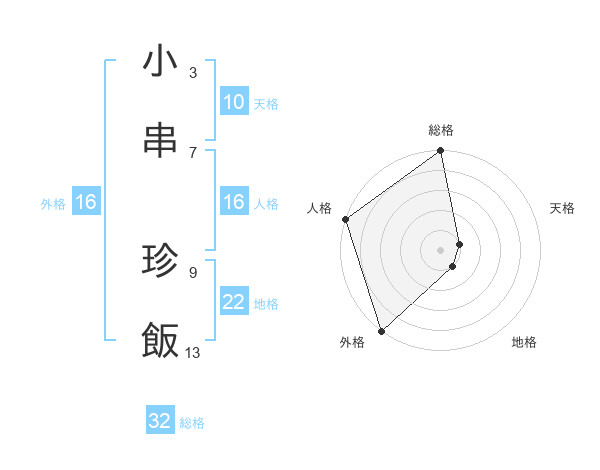 小串 珍飯さんを姓名の画数から五運を鑑定