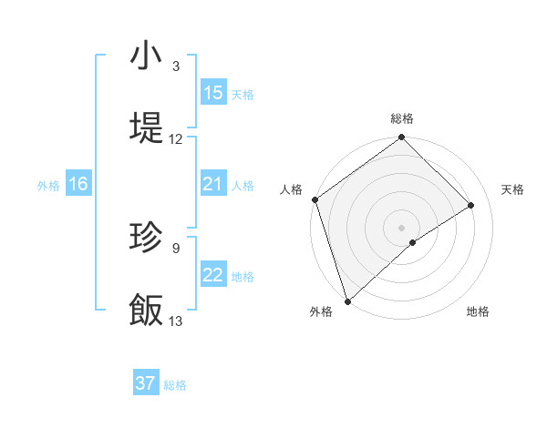 小堤 珍飯さんを姓名の画数から五運を鑑定