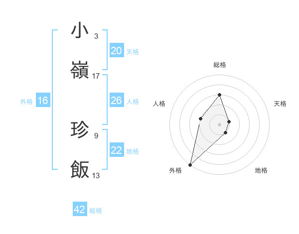 小嶺 珍飯さんの総格は42画の3点!