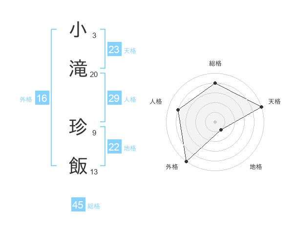 小滝 珍飯さんの総格は45画の4点!