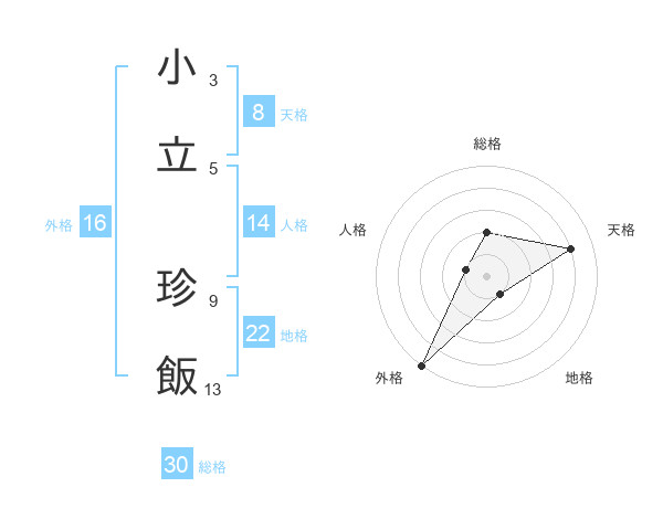 小立 珍飯さんの総格は30画の2点!