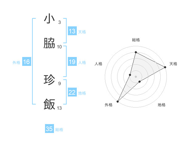小脇 珍飯さんを姓名の画数から五運を鑑定